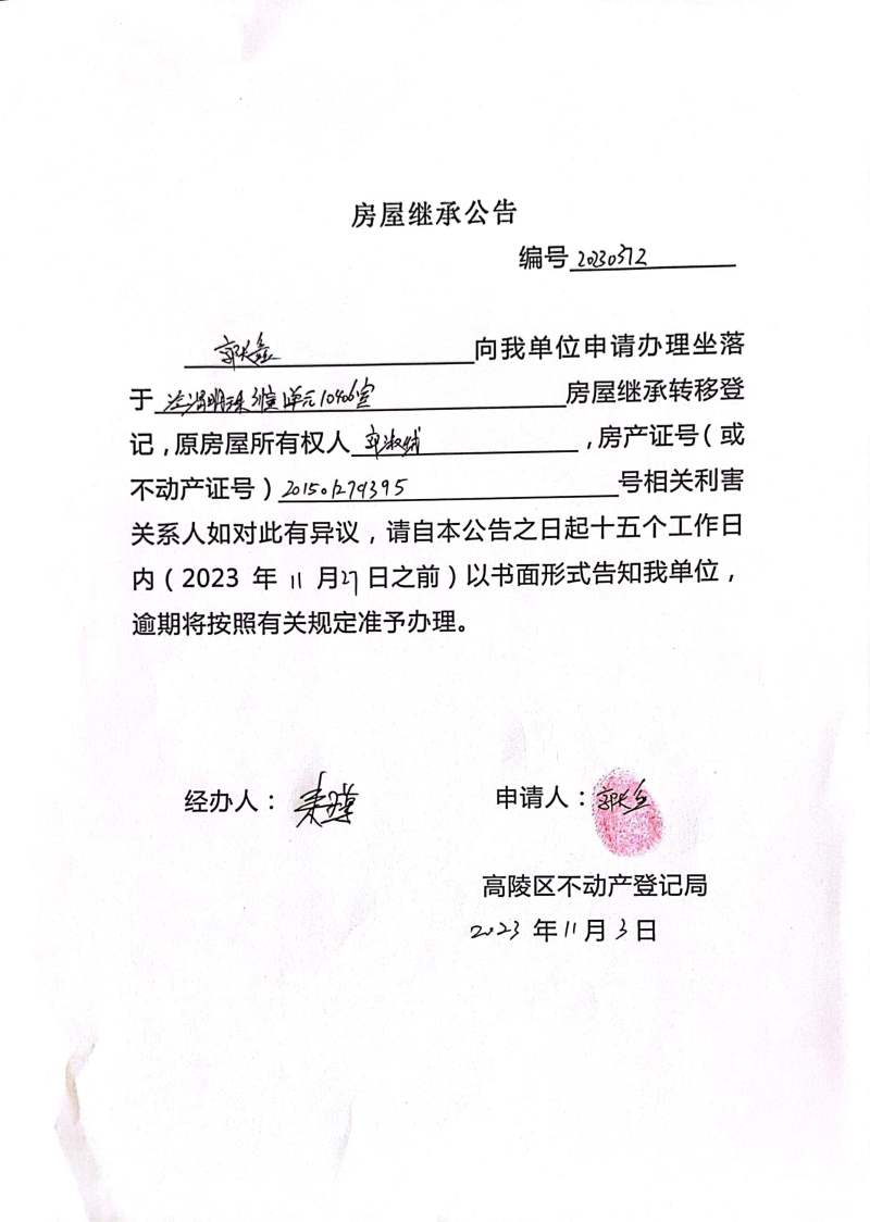 郭長鑫房屋繼承公告 編號:202300372