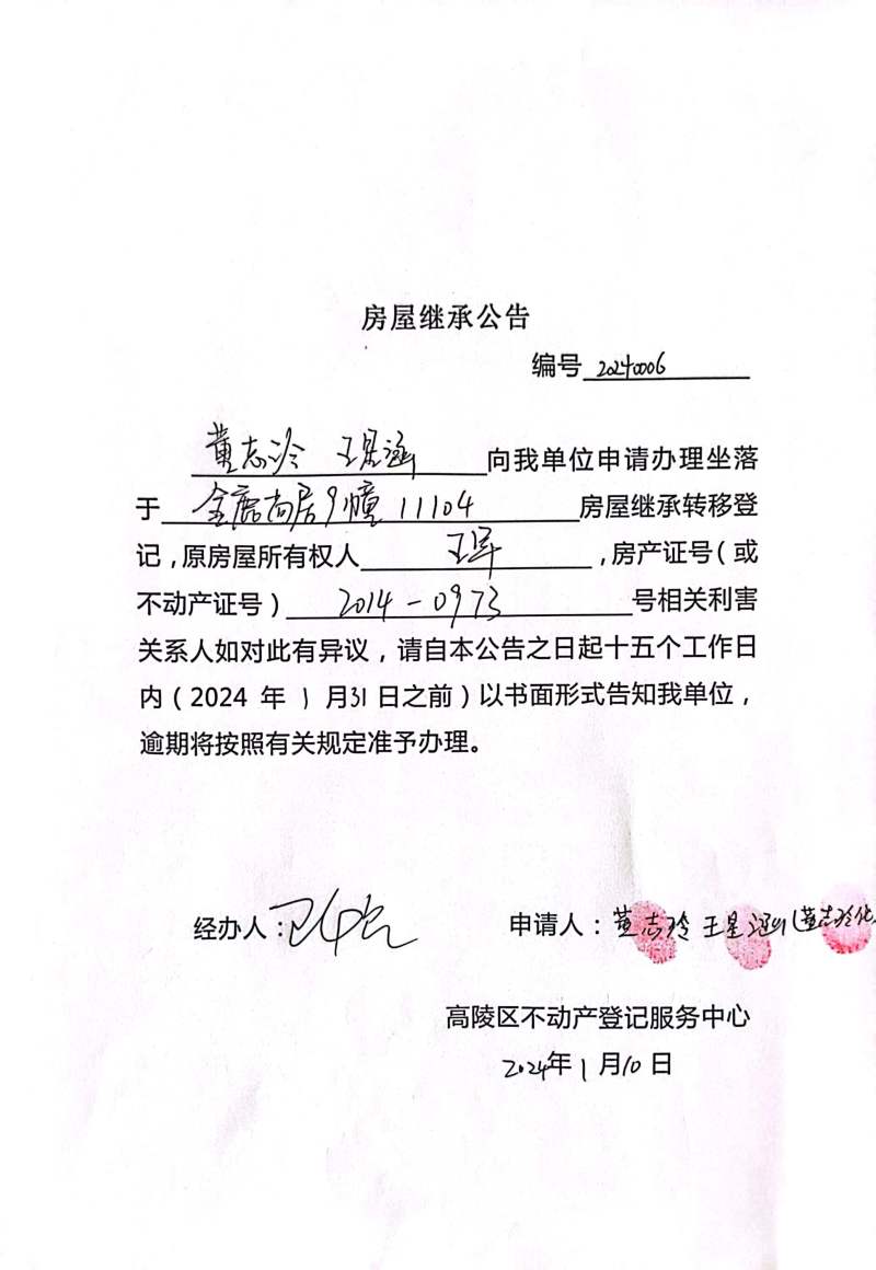 董志玲、王星涵房屋繼承公告 編號:20240006