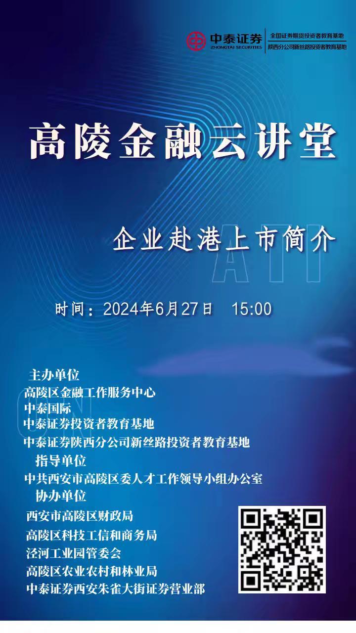 為不斷優化金融營商環境,持續做好企業掛牌上市宣傳,結合多層次資本市場發展,幫助轄區企業及投資者及時、準確地了解企業赴港上市的基本條件,6月27日,高陵區金融工作服務中心聯合中泰證券陜西分公司新絲路投資者教育基地及新浪財經組織開展了“高陵金融云講堂”系列活動之“企業赴港上市簡介”宣傳培訓活動。本次活動共1000余人次在線參與。