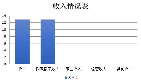 2019年度收入合計12.89萬元,其中:財政撥款收入12.89萬元,占100.00%;事業收入0.00萬元,占0.00%;經營收入0.00萬元,占0.00%;其他收入0.00萬元,占0.00%。