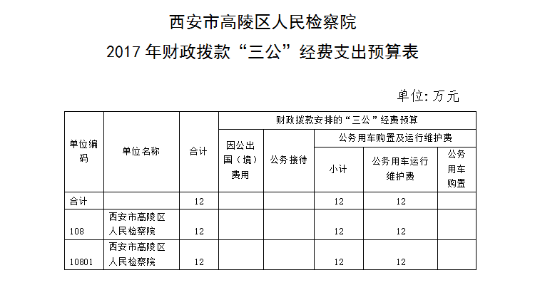 高陵區人民檢察院2017年“三公經費”支出預算表