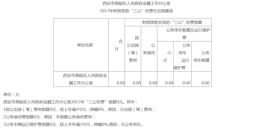 高陵區人民政府金融工作辦公室2017年財政撥款“三公”經費支出預算表