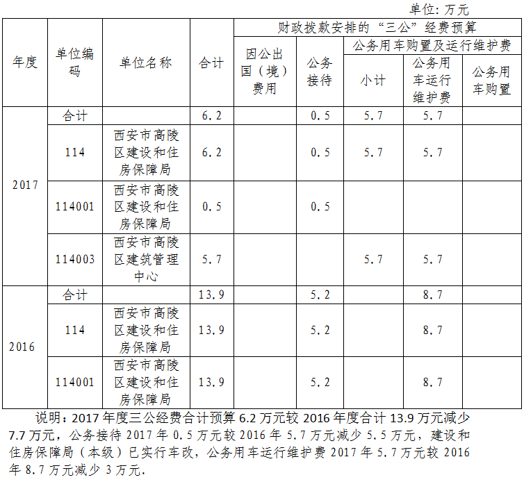 西安市高陵區建設和住房保障局 2017年度“三公經費”預算公開