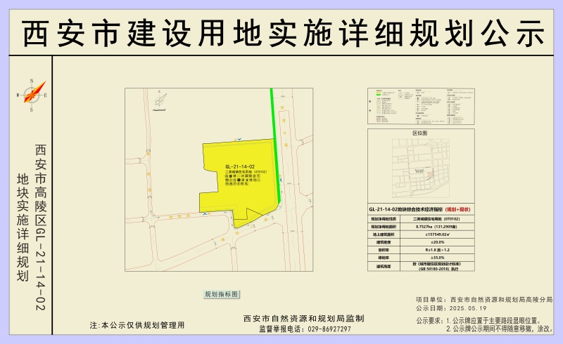 GL-21-14-02用地性質為二類城鎮住宅用地(070102),凈用地面積約131.291畝,容積率≤1.8且>1.2,建筑密度≤20%,綠地率≥35%。建筑限高按《城市居住區規劃設計標準》(GB50180-2018)執行。停車位嚴格按照《西安市自然資源和規劃局關于印發西安市建設項目停車位配建標準的通知》(市資源發〔2023〕3號)和《西安市建設項目停車位配建標準住宅類項目補充規定(試行)》市資源發〔2024〕165號配置。配建設施嚴格按照《西安市居住區配套設施配建指南(試行)》要求配建。