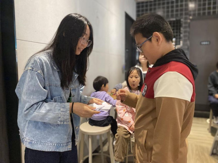 活動開始前,常青藤社會工作者瑞瑞老師用手指游戲幫助大家活動手指,通過簡單的加法幫助孩子們活躍大腦,靈活手指,為之后的活動集中注意力。
