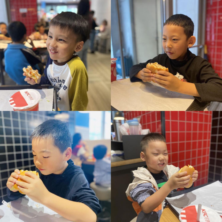 最后到了大家期待已久的漢堡制作環節,孩子們看著面前的食材,聽著餐廳工作人員的講解,快速的制作著漢堡。小朋友們看著面前自己親手制作的漢堡,“嗷嗚”一大口咬了下去,漢堡的美味在口腔里回蕩著,小朋友們吃的開心極了。