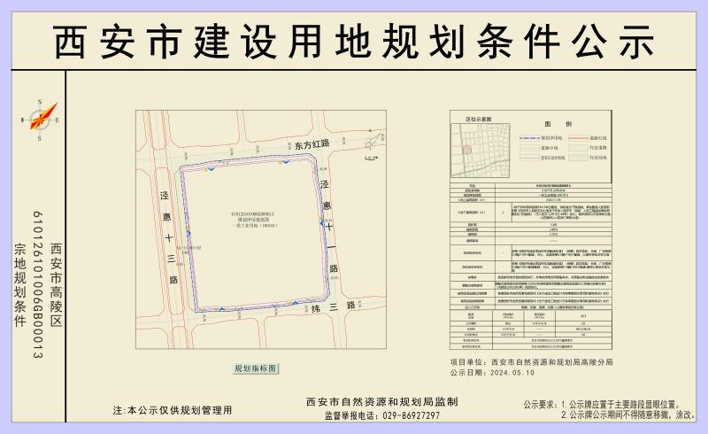 610126101006GB00013地塊用地性質為一類工業(yè)用地(100101);凈用地面積約325.155畝,容積率1.08(該指標為控制下限),建筑系數≥40%,綠地率≤15%。配套設施:公共廁所建筑面積60㎡,環(huán)網柜用地面積126㎡,垃圾收集點占地120㎡。