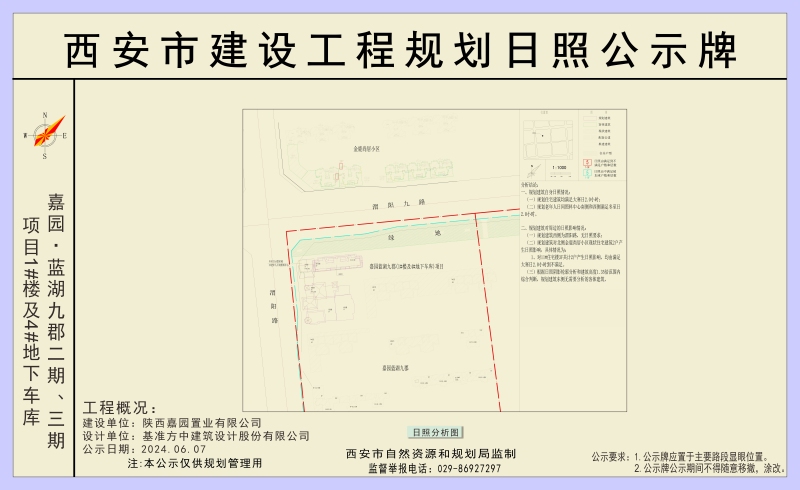 陜西嘉園置業(yè)有限公司嘉園·藍湖九郡二期、三期項目1#樓及4#地下車庫《建設(shè)工程規(guī)劃許可證》于2018年2月9日核發(fā);現(xiàn)因規(guī)劃變更,予以進行為期7個工作日的公示,待相關(guān)利害關(guān)系人無異議后我局將按程序核發(fā)該項目變更后的《建設(shè)工程規(guī)劃許可證》。