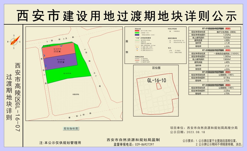 GL-16-07位于高陵區16單元,位于西韓公路以西、渭陽五路以南、渭陽四路以北、規劃路以東。各宗地具體指標如下: