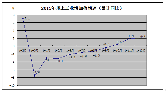 年末全區工業增加值195.62億元,比上年增長2.6%。其中,規模以上工業增加值190.01億元,增長2.1%。規模以上工業總產值實現842.71億元,同比下降2.34%,其中,輕工業產值51.97億元,增長18.36%;重工業產值790.74億元,下降3.45%。企業主營業務收入實現684.24億元,下降5.23%;企業實現利潤總額10.07億元,下降37.58%。