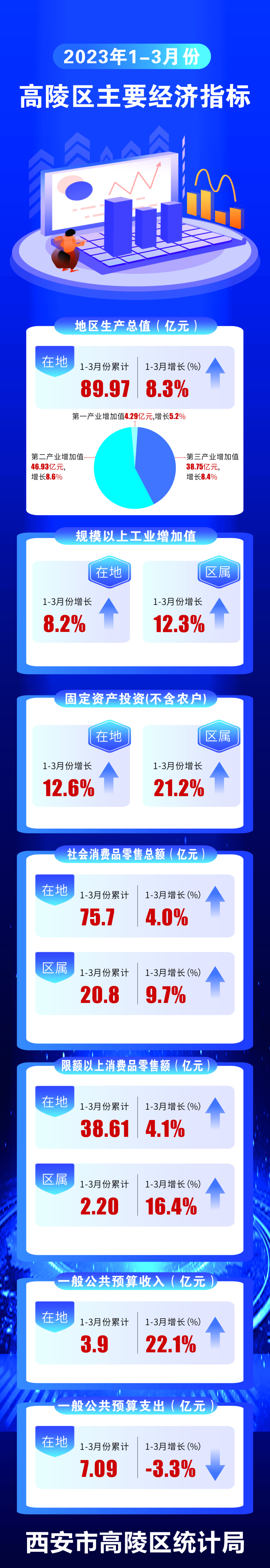 2023年一季度份高陵主要經濟指標指標名稱在地區屬1-3月累計增長(%)1-3月累計增長(%)一、地區生產總值(億元)89.978.3——其中:第一產業增加值(億元)4.295.2——第二產業增加值(億元)46.938.6——第三產業增加值(億元)38.758.4——二、規模以上工業增加值(%)—8.2—12.3三、固定資產投資(%)—12.6—21.2四、社會消費品零售總額(億元)75.74.020.89.7五、限額以上消費品零售額(億元)38.614.12.2016.4六、一般公共預算收入(億元)3.9022.1——一般公共預算支出(億元)7.09-3.3—— |