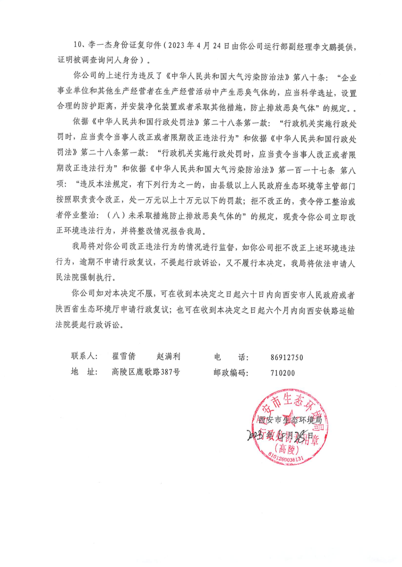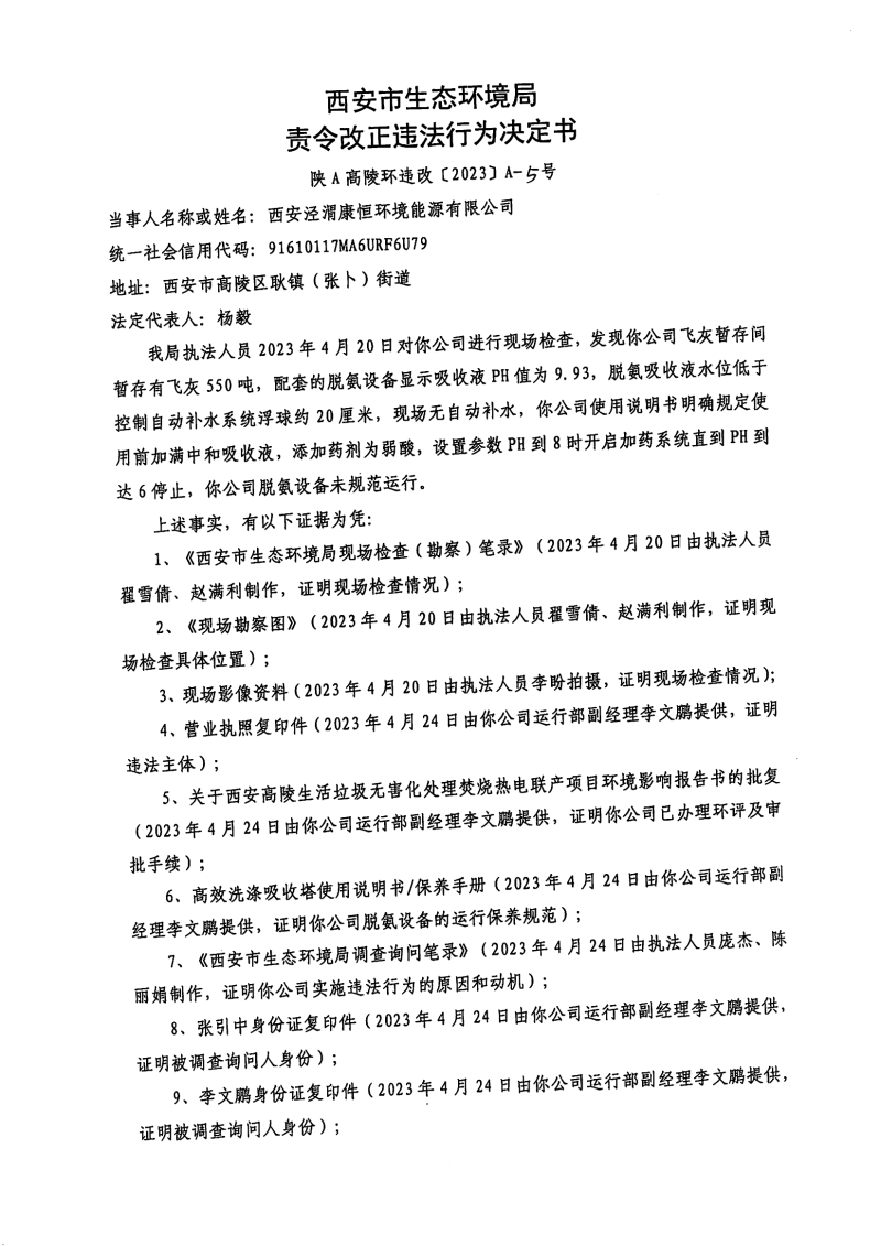 西安市生態環境局責令改正違法行為決定書陜A高陵環違改〔2023〕A-5號