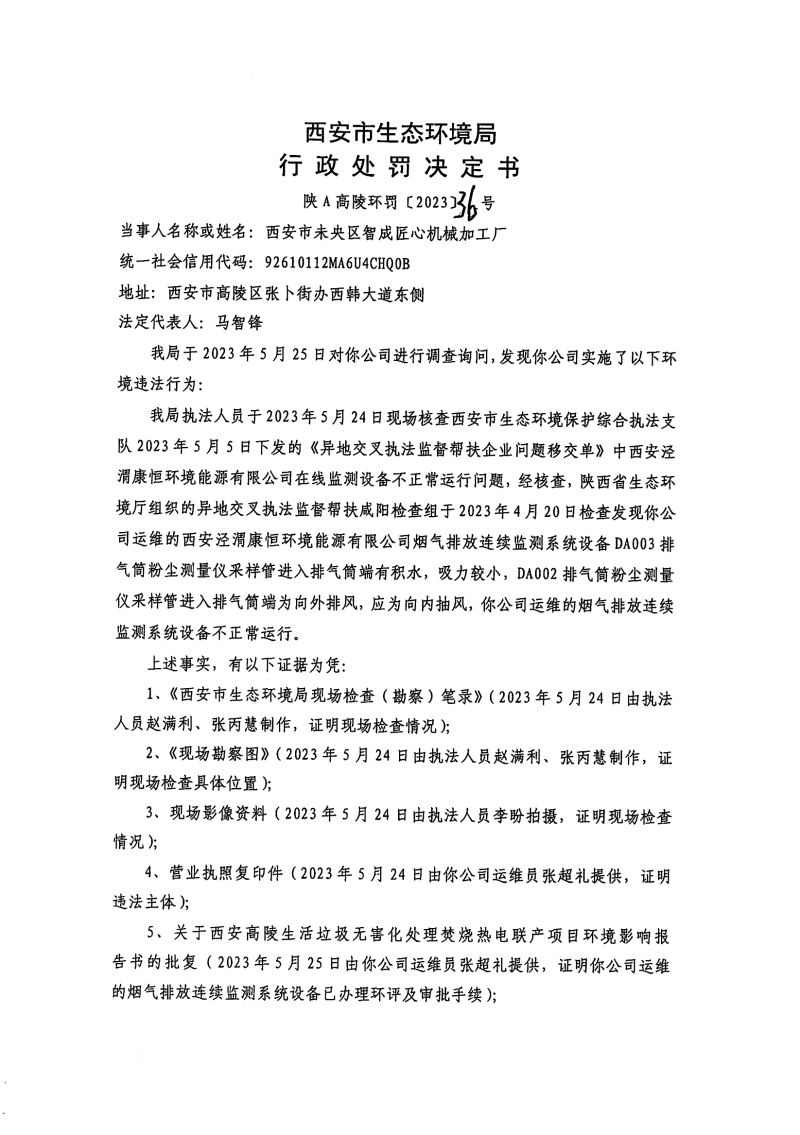 西安市生態(tài)環(huán)境局行政處罰決定書陜A高陵環(huán)罰〔2023〕36號(hào)