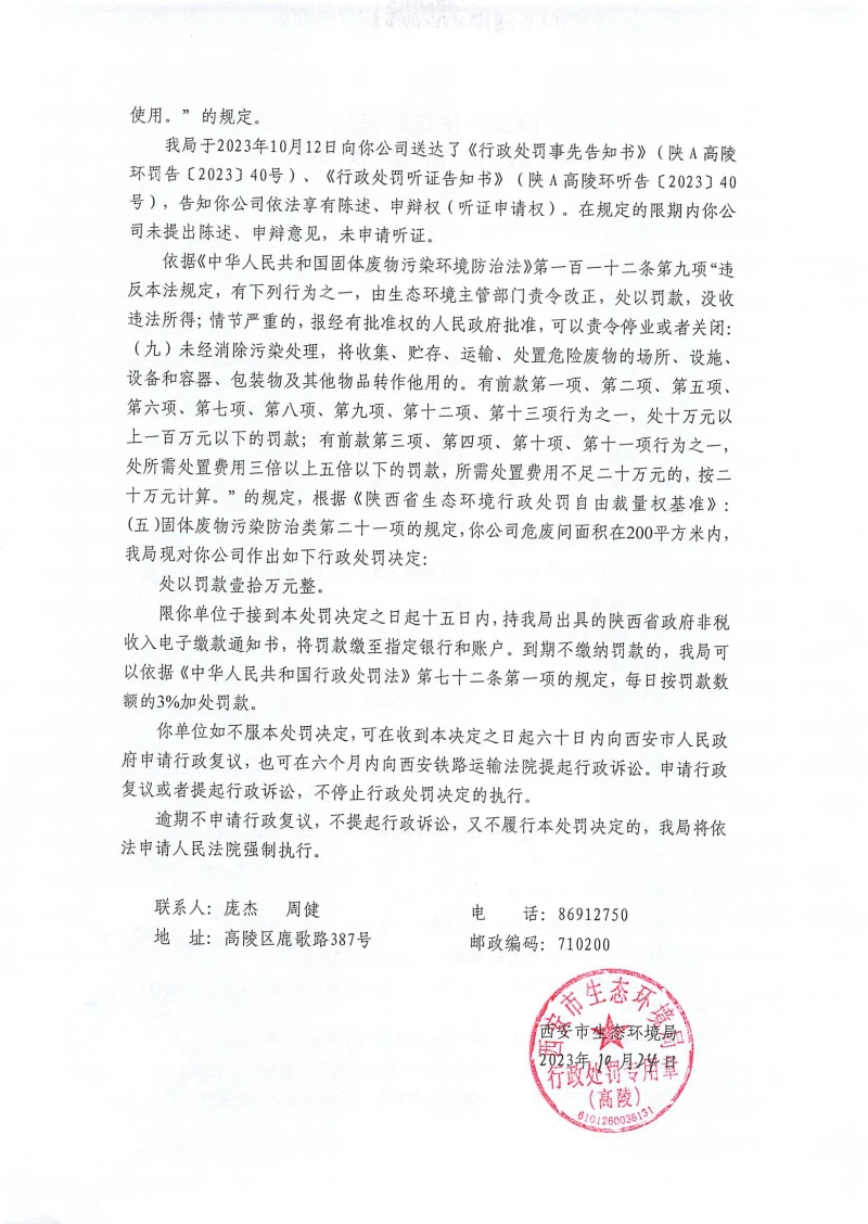 西安市生態(tài)環(huán)境局行政處罰決定書(shū)陜A高陵環(huán)罰〔2023〕43號(hào)