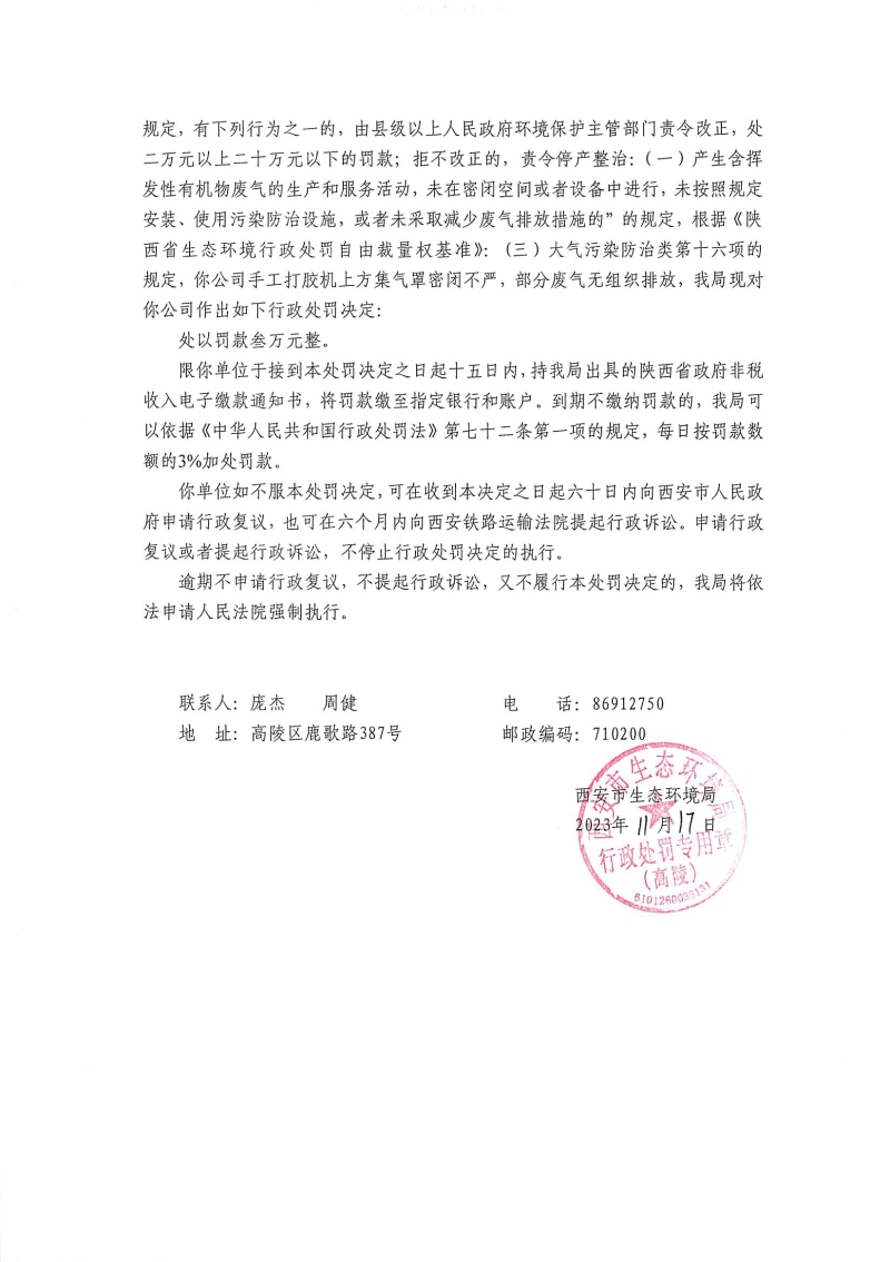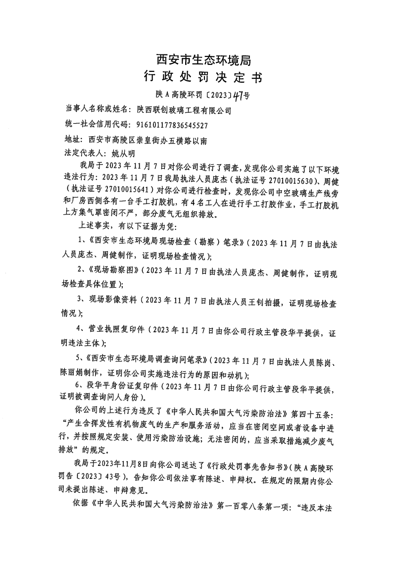 西安市生態環境局行政處罰決定書陜A高陵環罰〔2023〕47號