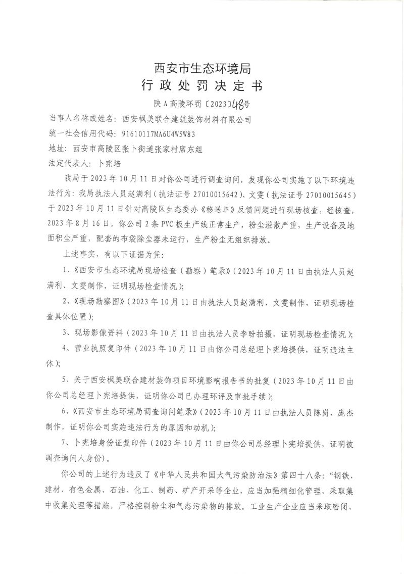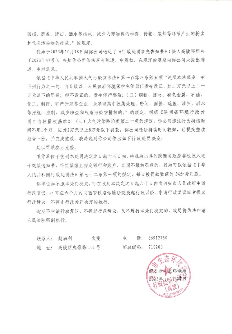 西安市生態(tài)環(huán)境局行政處罰決定書陜A高陵環(huán)罰〔2023〕48號 |