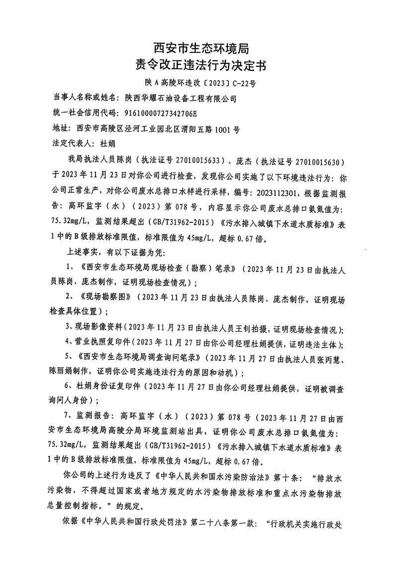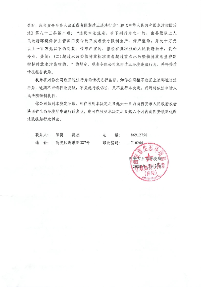 西安市生態環境局高陵分局責令改正違法行為決定書〔2023〕C-22號