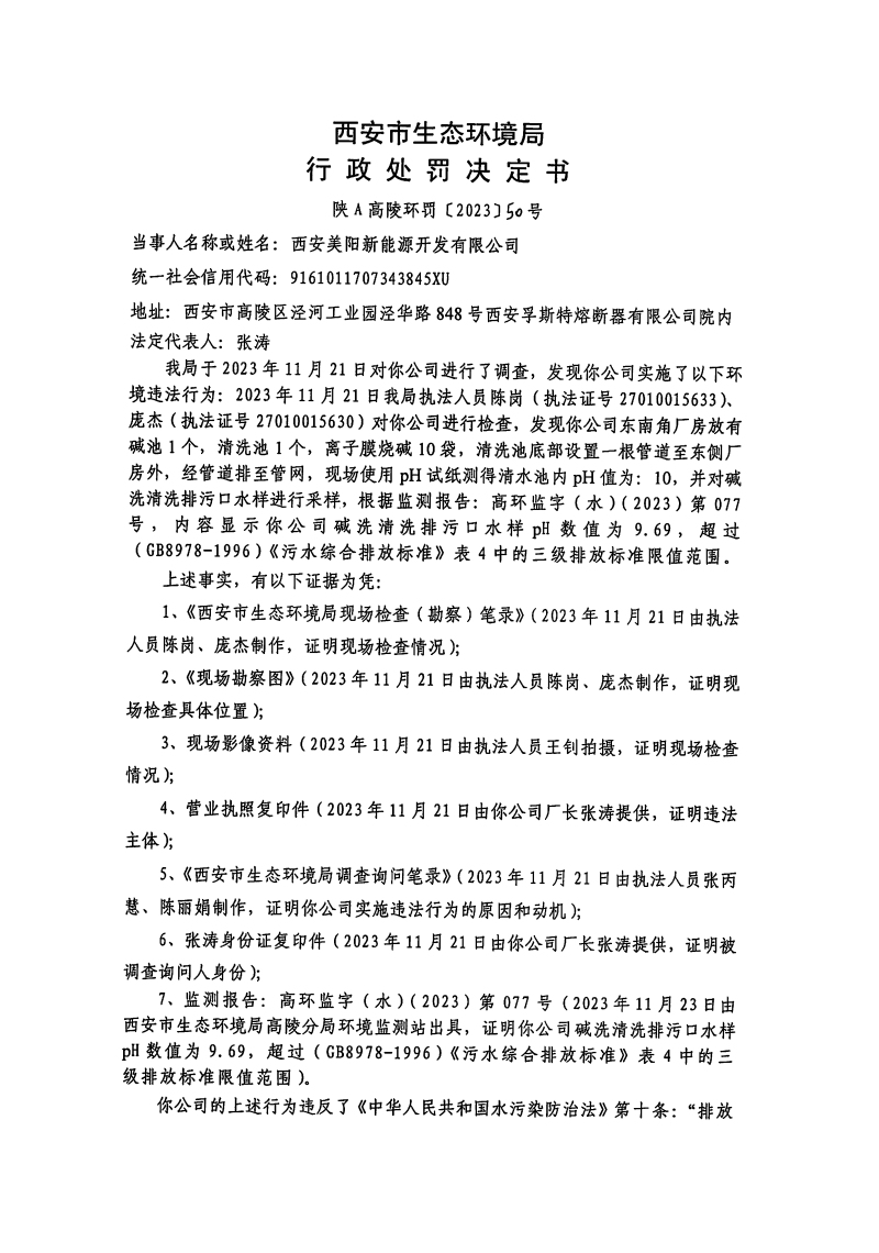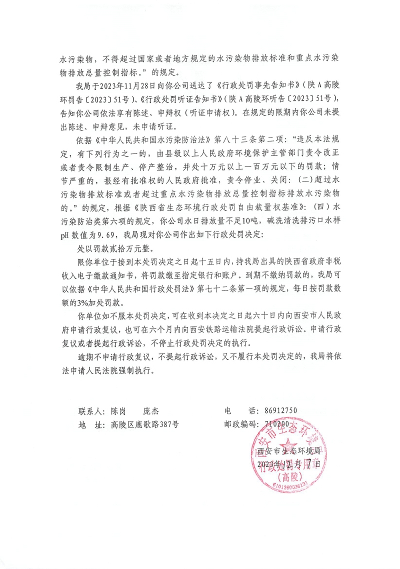 西安市生態環境局行政處罰決定書陜A高陵環罰〔2023〕50號