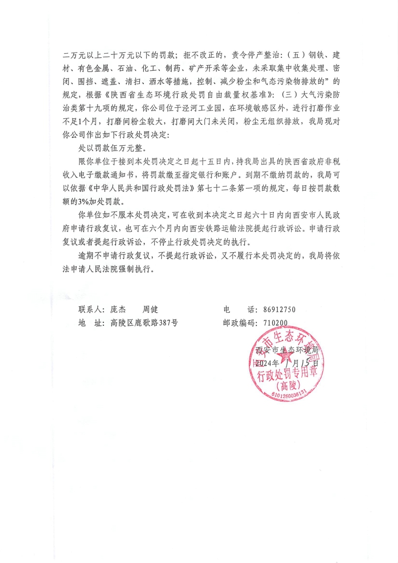 西安市生態(tài)環(huán)境局行政處罰決定書陜A高陵環(huán)罰〔2024〕3號(hào) |