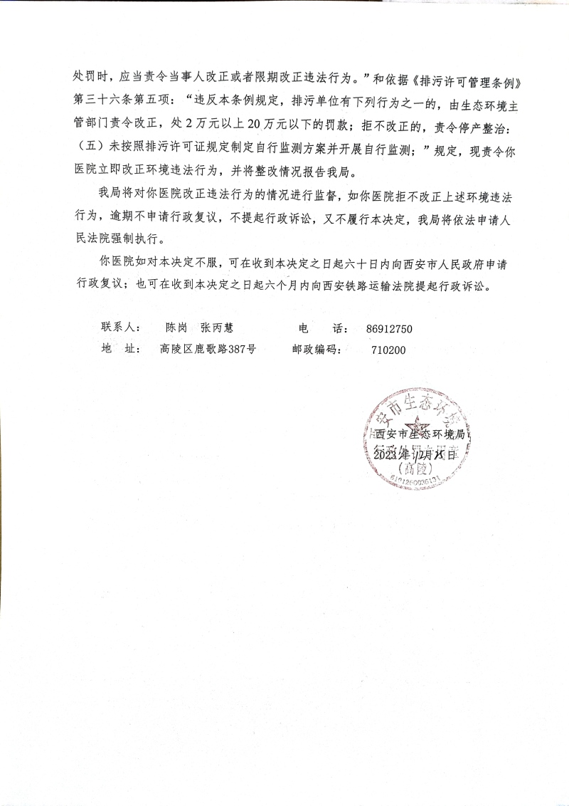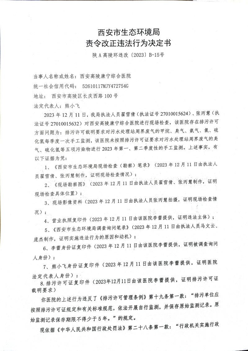 西安市生態環境局高陵分局責令改正違法行為決定書〔2023〕B-15號
