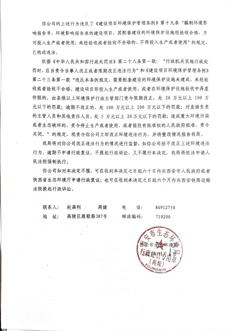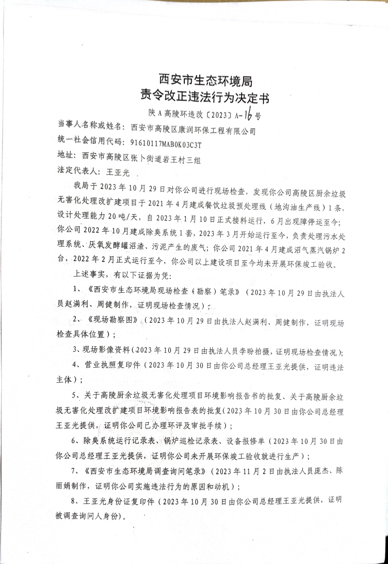 西安市生態環境局高陵分局責令改正違法行為決定書〔2023〕A-16號