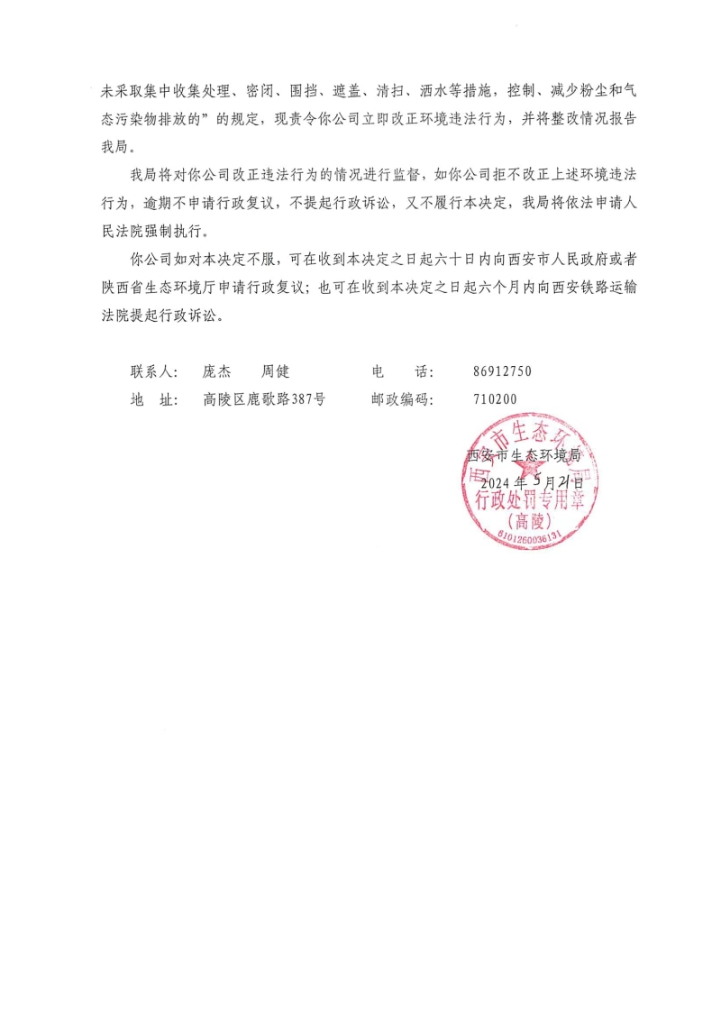 西安市生態(tài)環(huán)境局高陵分局責(zé)令改正違法行為決定書陜A高陵環(huán)違改C-6號
