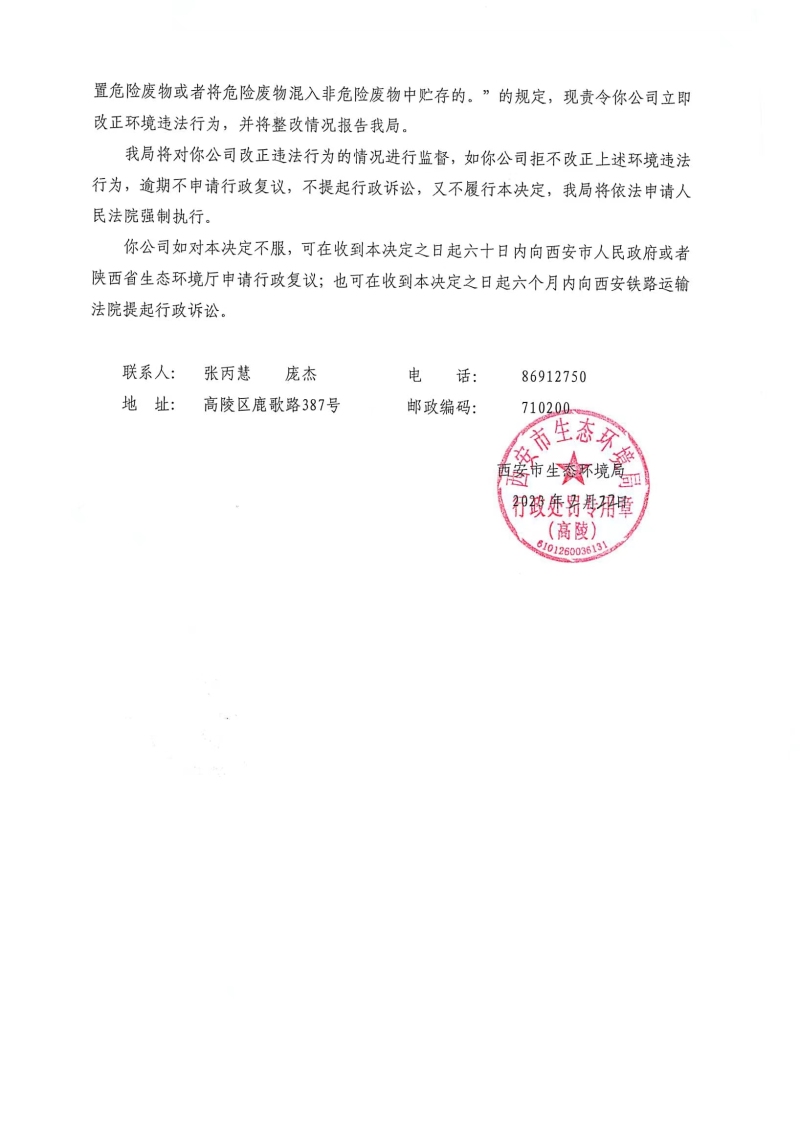 西安市生態環境局責令改正違法行為決定書陜A高陵環違改〔2023〕C-1號