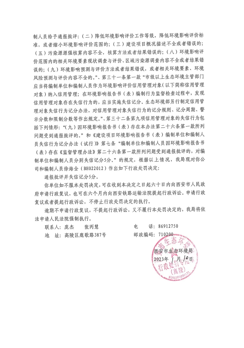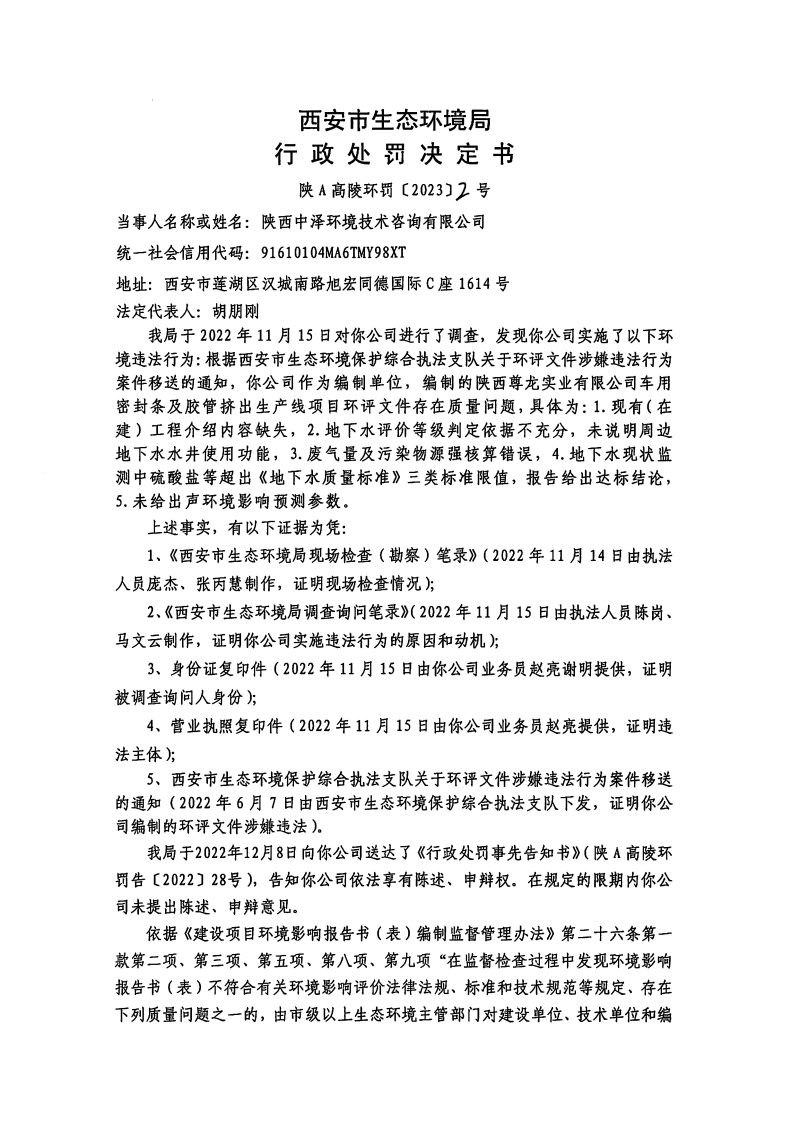 西安市生態環境局行政處罰決定書陜A高陵環罰〔2023〕2號