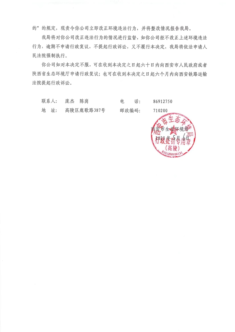 西安市生態環境局責令改正違法行為決定書陜A高陵環違改〔2023〕C-7號