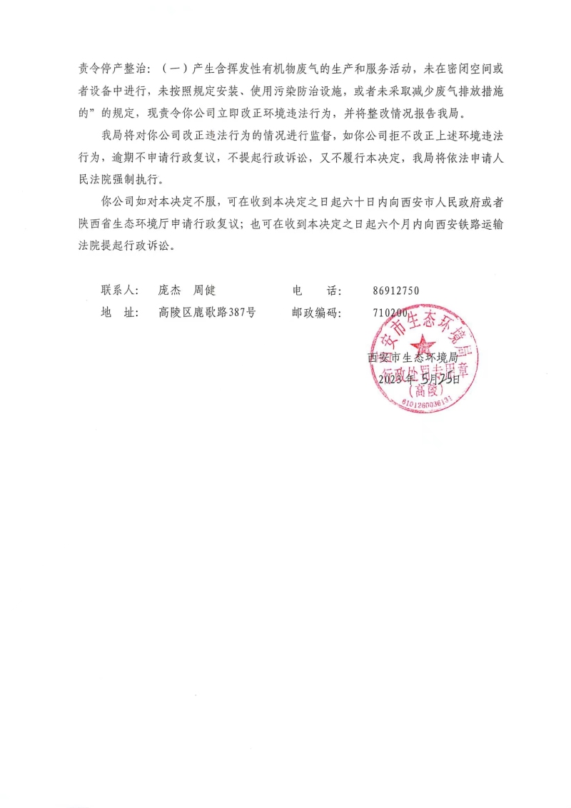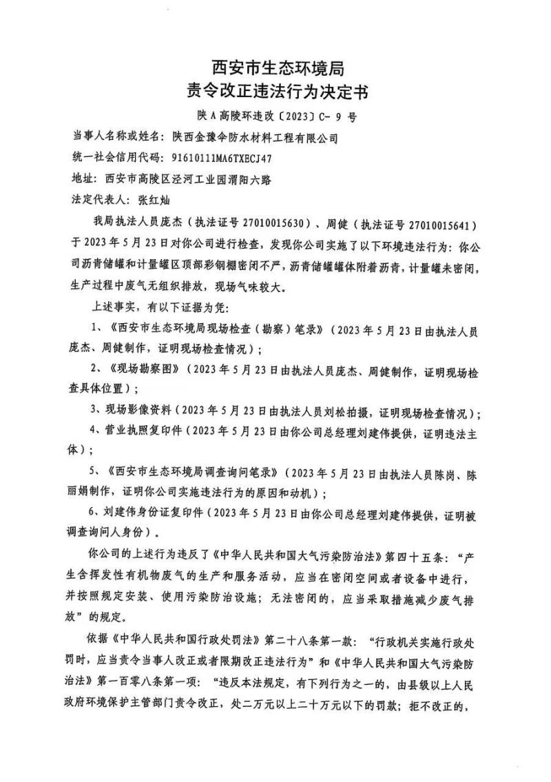 西安市生態環境局責令改正違法行為決定書陜A高陵環違改〔2023〕C-9號