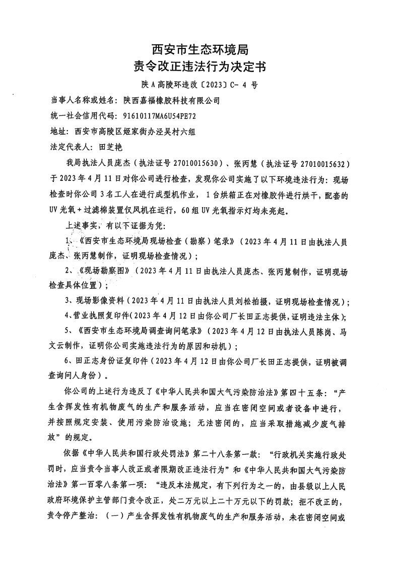 西安市生態環境局責令改正違法行為決定書陜A高陵環違改〔2023〕C-4號