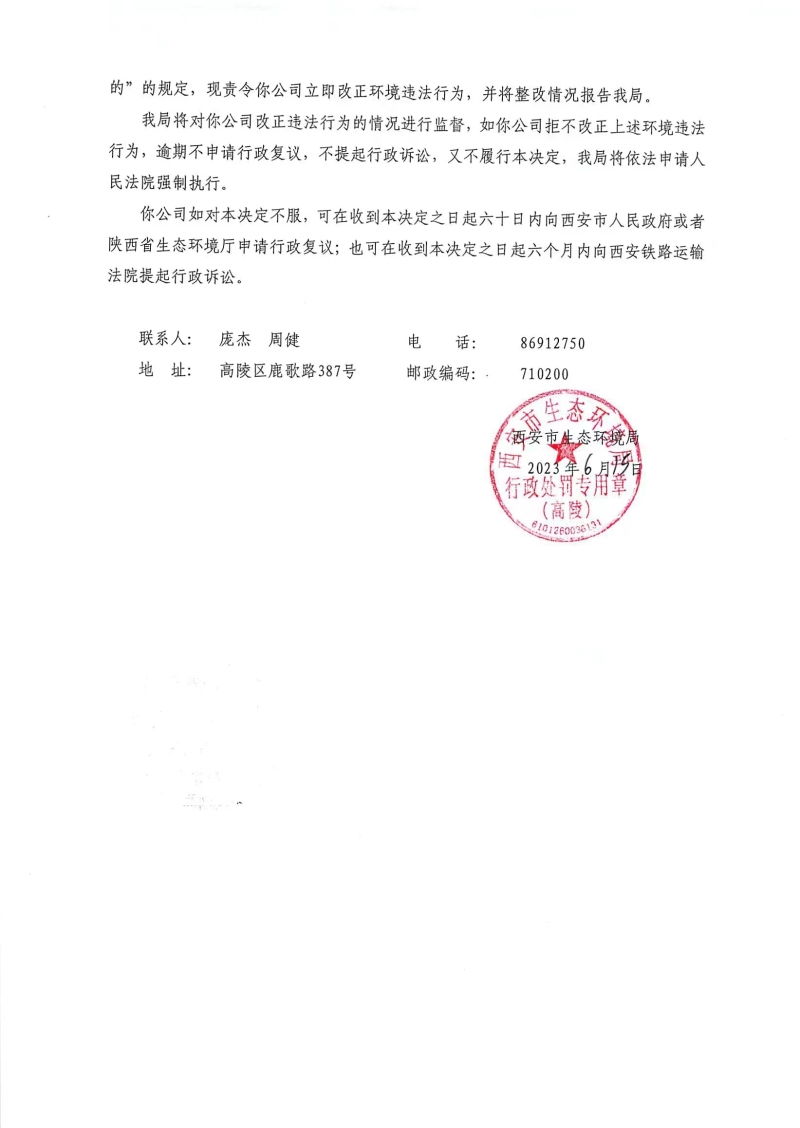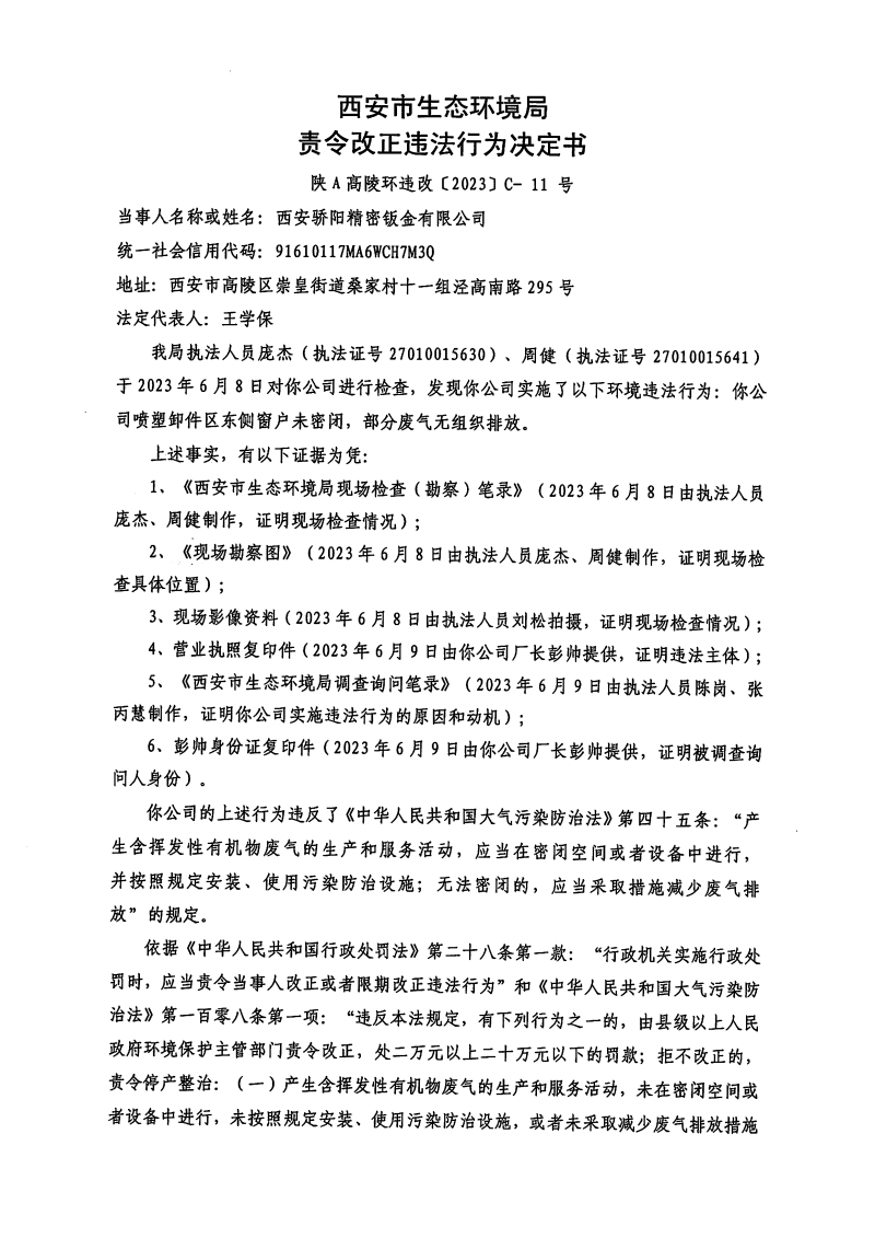 西安市生態(tài)環(huán)境局高陵分局責令改正違法行為決定書〔2023〕C-11 |