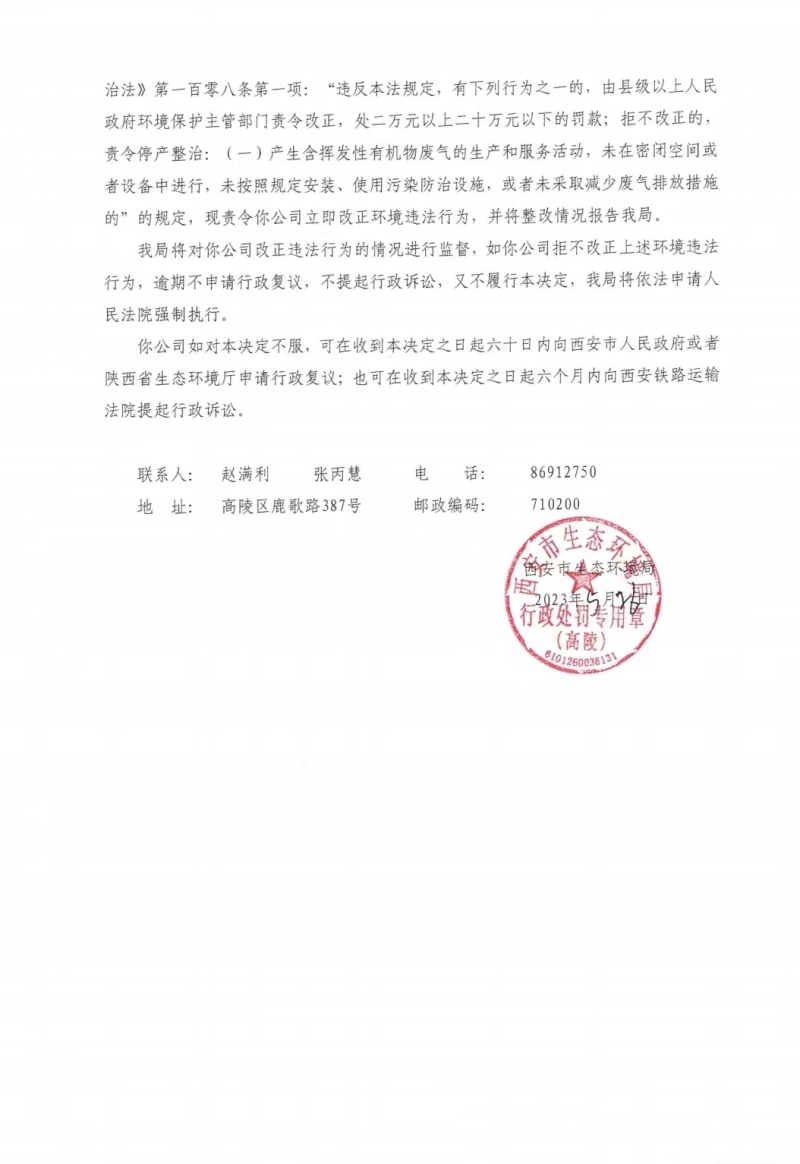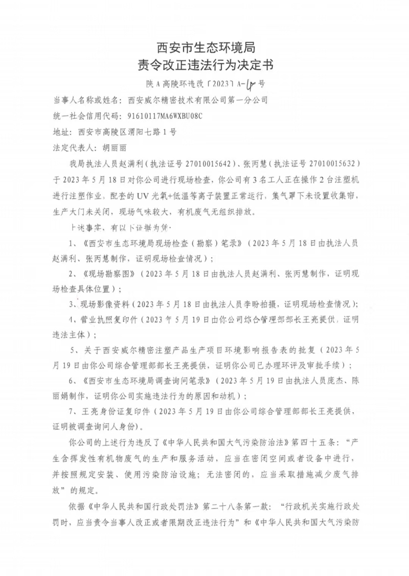 西安市生態環境局高陵分局責令改正違法行為決定書〔2023〕A-4
