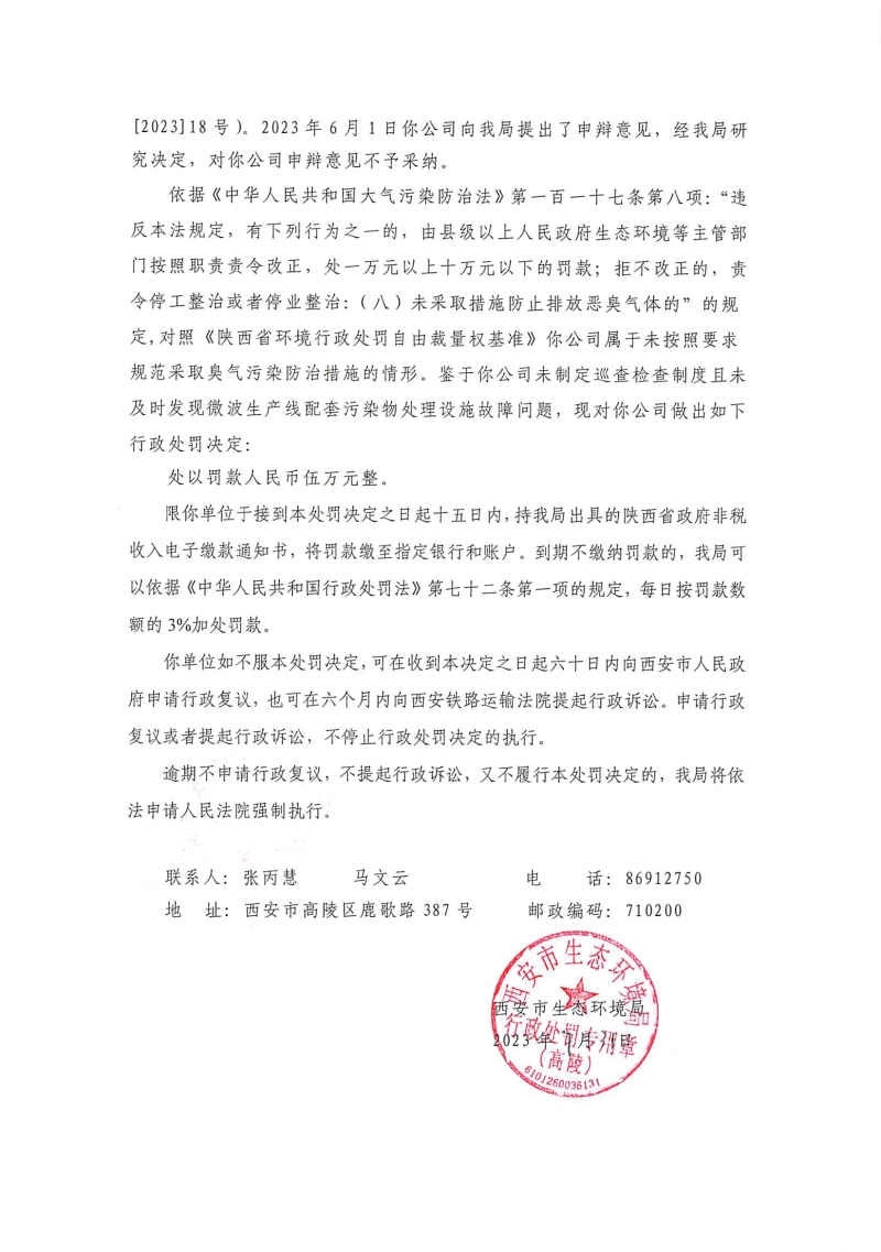 西安市生態環境局行政處罰決定書陜A高陵環罰〔2023〕27號