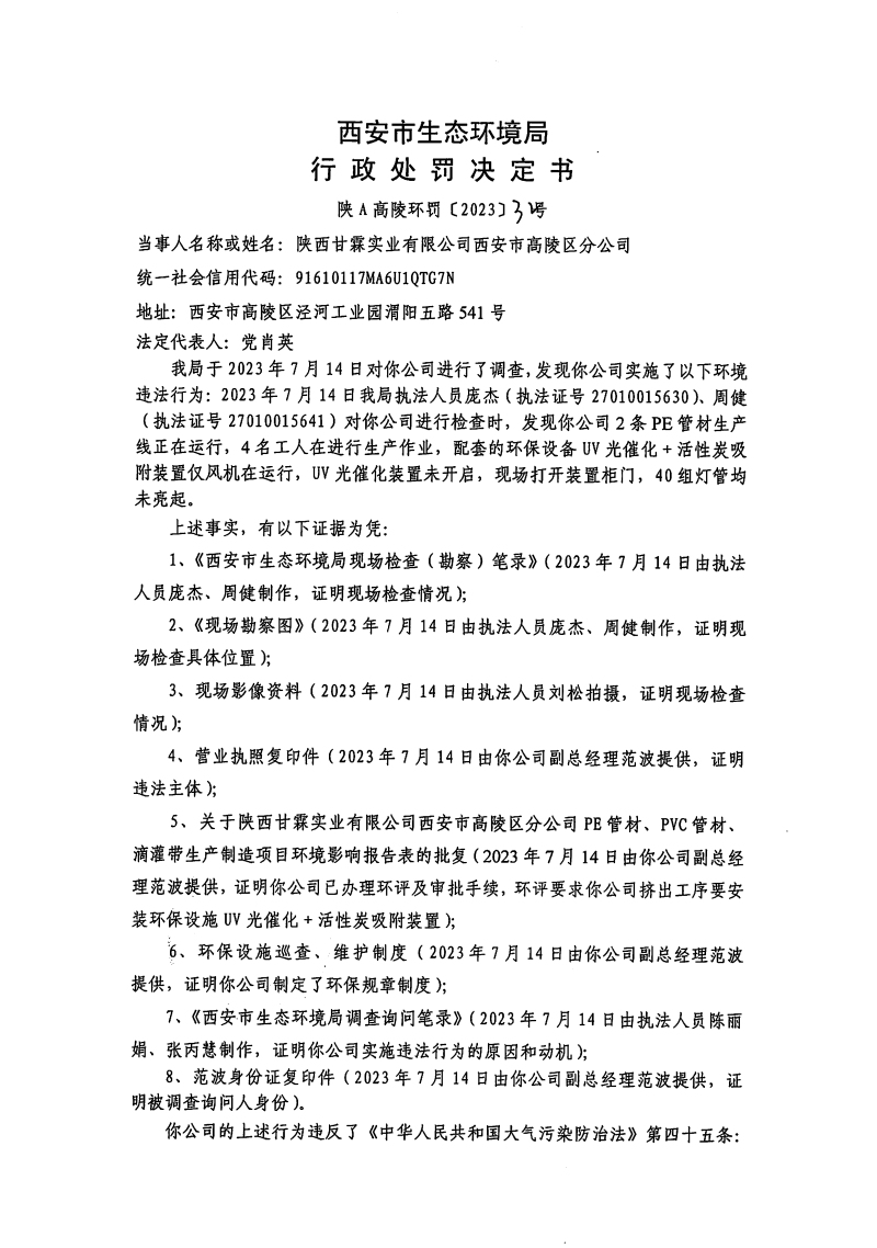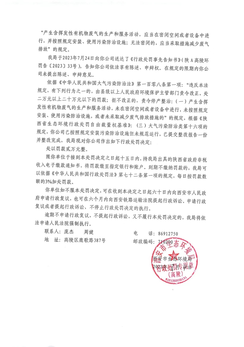 西安市生態(tài)環(huán)境局行政處罰決定書(shū)陜A高陵環(huán)罰〔2023〕32號(hào)