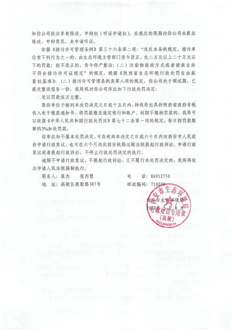 西安市生態環境局行政處罰決定書陜A高陵環罰〔2023〕12號