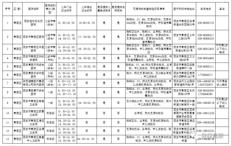 近期秋冬季兒童呼吸道感染進入高發(fā)期,為方便群眾查詢和了解兒科就醫(yī)渠道,及方便兒科患者就近就診,現(xiàn)將高陵區(qū)提供兒科診療服務的醫(yī)療機構信息公示如下: