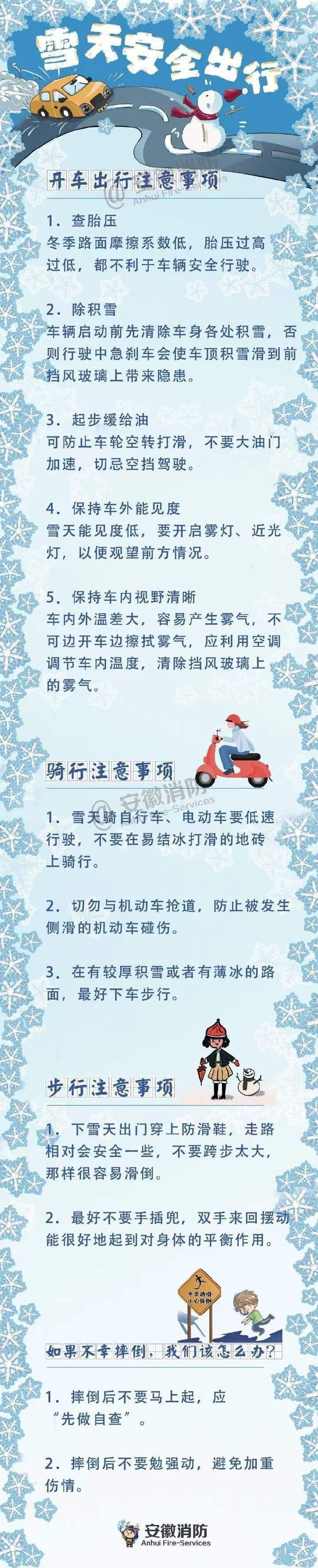 雨雪天氣容易導致道路降雪堆積、結(jié)冰或濕滑,要多加注意出行安全。雪天開車、騎行和步行有哪些注意事項?如果摔倒,我們該怎么辦?戳下圖了解↓↓