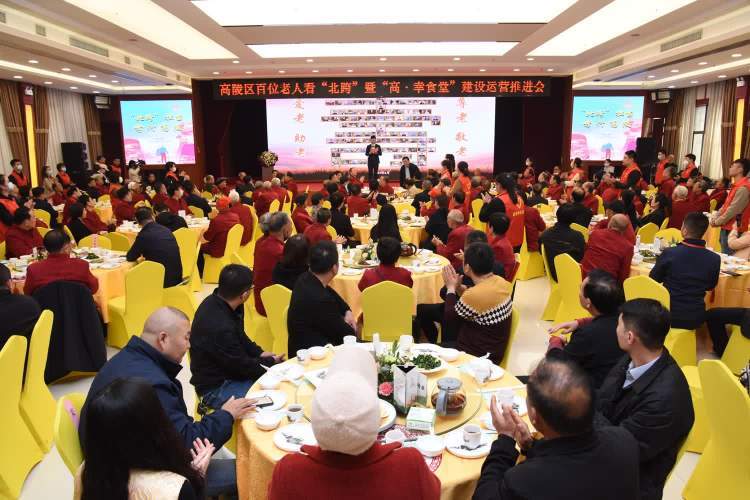 第二階段在區招待所三樓會議廳舉行百位老人看“北跨”暨“高·幸食堂”建設運營推進會和“百壽宴”活動。