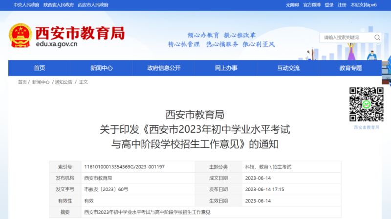 為深入貫徹黨的二十大精神,按照《教育部辦公廳關于做好2023年普通中小學招生入學工作的通知》(教基廳〔2023〕1號)、《陜西省教育廳辦公室關于做好2023年陜西省初中學業水平考試工作的通知》(陜教基一辦〔2023〕2號)和《陜西省教育廳辦公室關于做好2023年普通中小學招生入學工作的通知》(陜教基一辦〔2023〕14號)要求,切實做好2023年初中學業水平考試和高中階段學校招生工作,制定本意見。