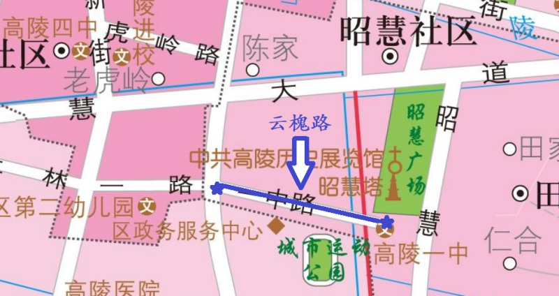 云槐路:原一中路,道路東起高陵一中,西至西韓大道,全長605米,寬12米。