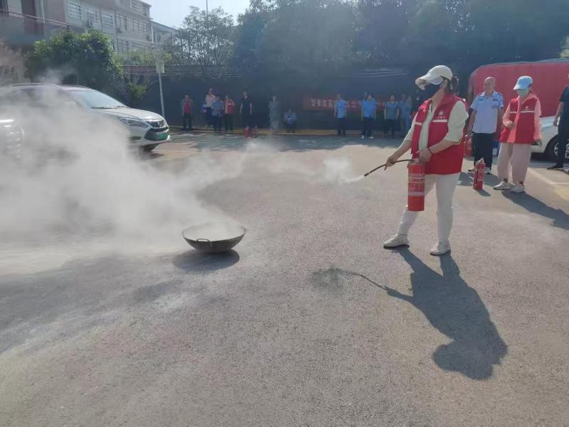 工作人員現(xiàn)場(chǎng)進(jìn)行了滅火器使用演示,講解了滅火器的種類、適用范圍以及“提、拔、握、壓”的正確操作步驟。通過(guò)直觀的演示,讓居民們對(duì)滅火器的使用有了更清晰的認(rèn)識(shí),隨后,居民們使用滅火器對(duì)模擬火源進(jìn)行撲滅操作。
