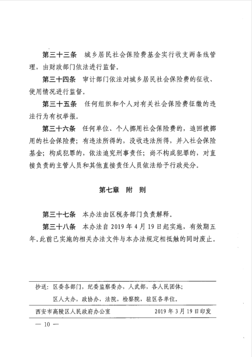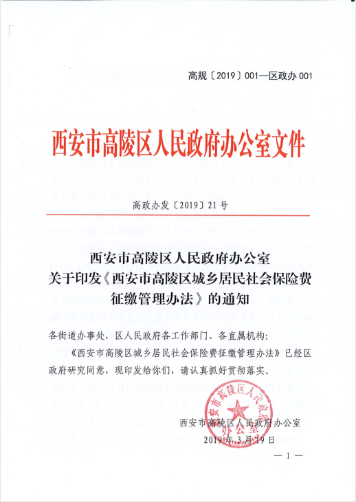 西安市高陵區人民政府辦公室關于印發《西安市高陵區城鄉居民社會保險費征繳管理辦法》的通知