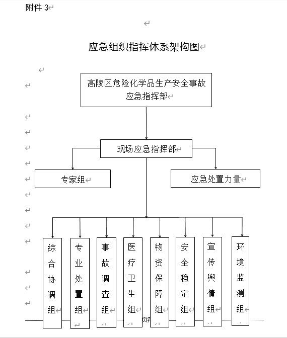 應(yīng)急指揮機構(gòu)由綜合協(xié)調(diào)組、專業(yè)處置組、安全穩(wěn)定組、物資保障組、醫(yī)療衛(wèi)生組、宣傳輿情組、環(huán)境監(jiān)測組、事故調(diào)查組、應(yīng)急專家組等組成,可根據(jù)情況成立其他應(yīng)急工作組。應(yīng)急工作組由一個或多個應(yīng)急成員單位組成,各組長由區(qū)危險化學(xué)品生產(chǎn)安全事故應(yīng)急指揮部總指揮指定,承擔(dān)具體的應(yīng)急處置任務(wù)(見附件2)。